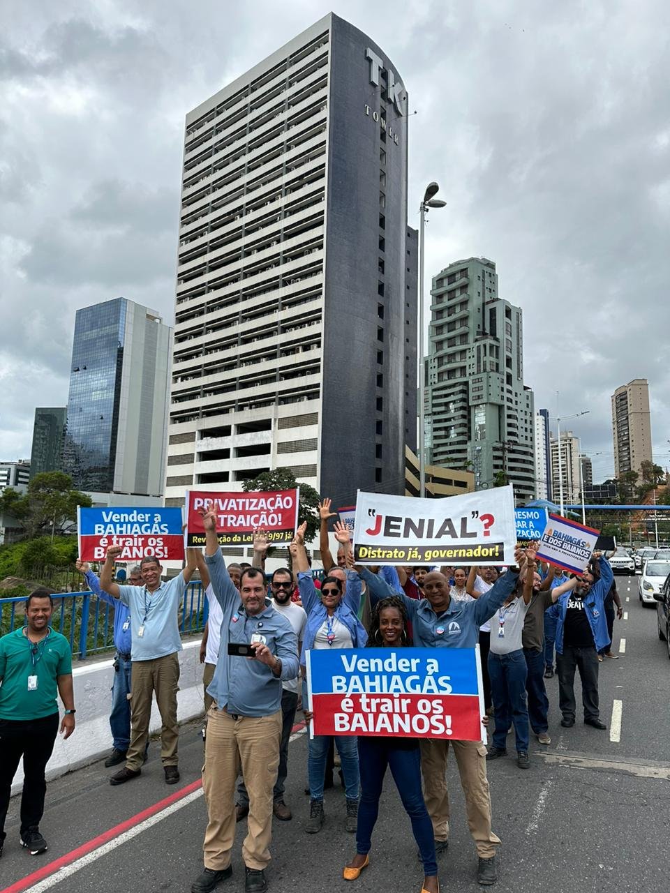 Junto com o Sindiquímica Bahia, trabalhadores e trabalhadoras da Bahiagás saíram hoje, 17/11, do seu local de trabalho e fizeram uma assembleia na frente da empresa, na Avenida Magalhães Neto, em Salvador, contra a privatização da empresa pelo governo do estado.